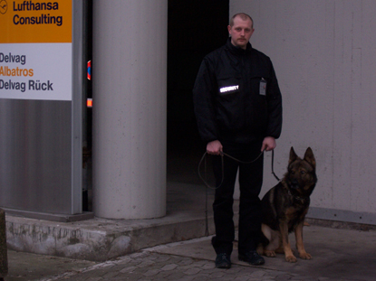 Mitarbeitern, auch mit ausgebildeten Schutz- und Wachhunden. Unsere Sicherheitsmitarbeiter sind behördlich überprüft, sowie auch mindestens nach §34 a der Gewerbeordnung geschult. Die
